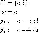 , exceto que cada a foi substituído por um b e cada b foi substituído por um a. Para cada palavra w em