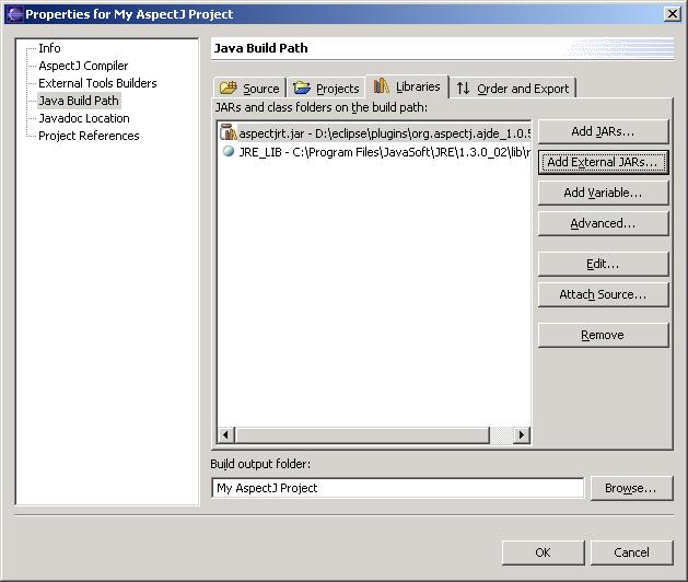 Browse to the org.aspectj.ajde_1.0.6 directory in the "plugins" sub-directory of your Eclipse installation. Select "aspectjrt.jar" and click "Open." (Note the image below is out of date and shows the 1.0.5 plugin directory).