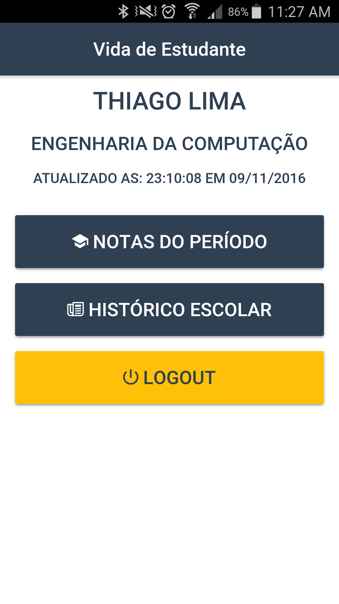 Vida de Estudante is a mobile application for monitoring academic systems. He monitors students' grades and alerts them when there are any changes. This allows the student to keep track of their notes in real time. Unfortunately the project was discontinued due to problems with college. (The team in charge did not like a student doing their job)
